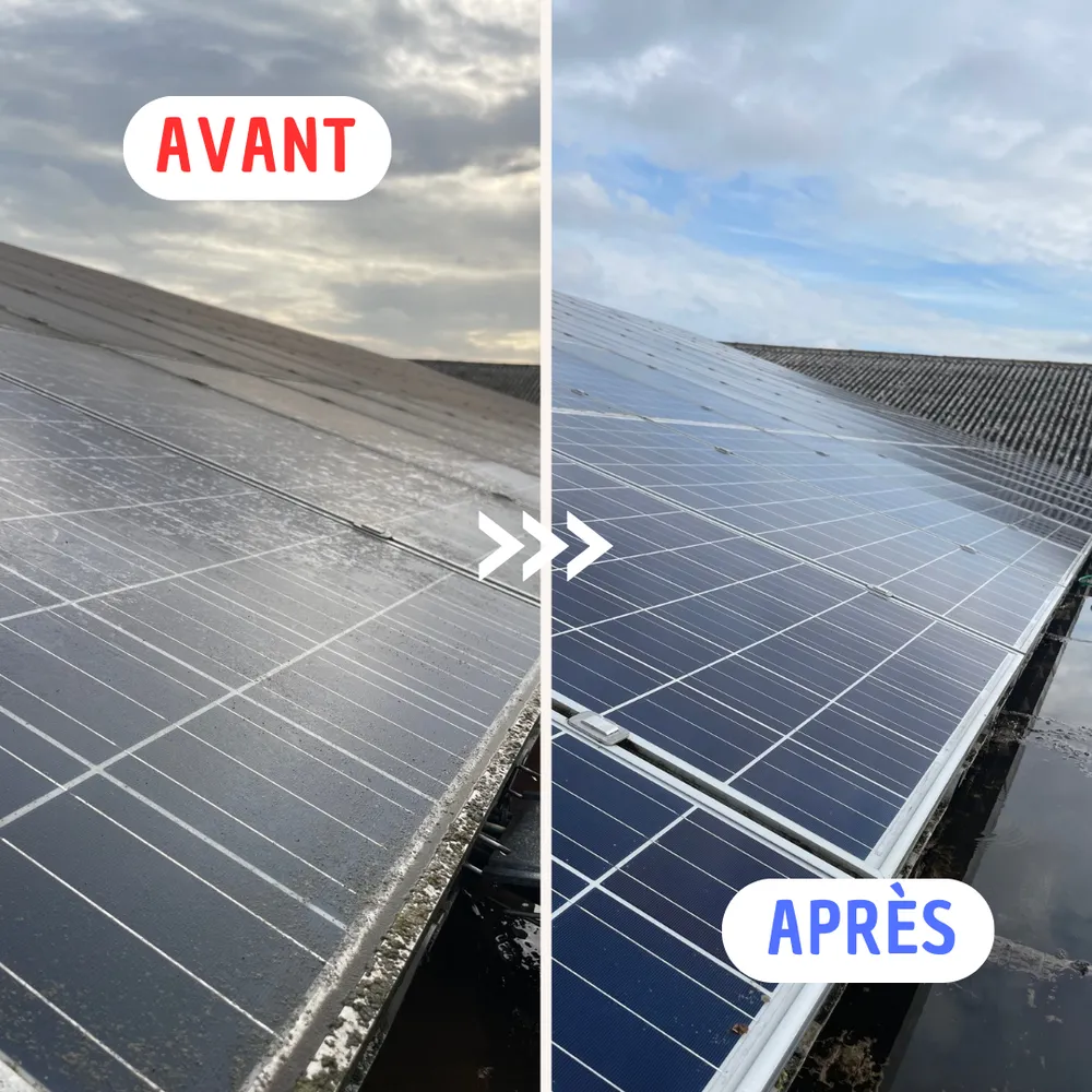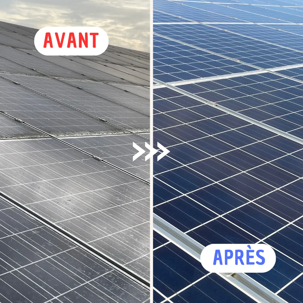 Avec le temps, la performance des panneaux solaires diminue à cause des dépôts de poussières, pollution, pollens ou fientes d’oiseaux. Ces salissures réduisent le rendement de production jusqu’à 15 %. Pour y remédier, nous réalisons un nettoyage spécifique à l’eau osmosée, sans aucun produit chimique, respectueux des surfaces vitrées et des installations électriques.